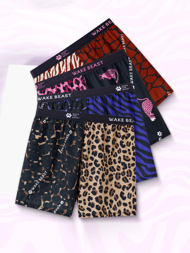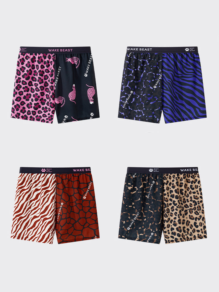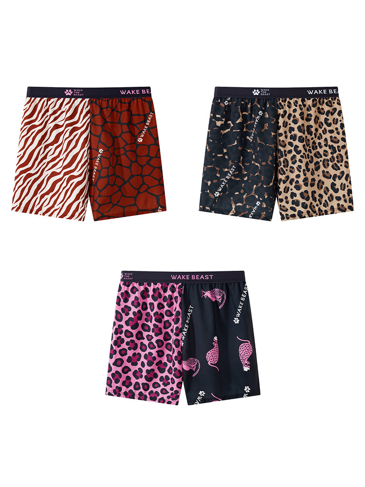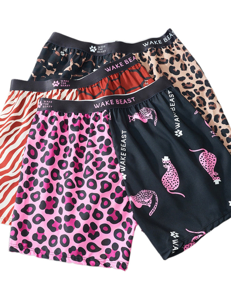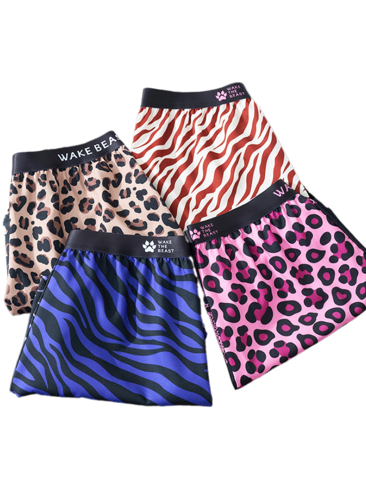 Unleash bold style and effortless comfort with these leopard print ice silk boxer shorts. designed for men who love a relaxed yet confident look. Crafted from smooth. breathable ice silk fabric. they offer a lightweight. cooling feel that keeps you fresh and comfortable all day. The loose-fit cut ensures total freedom of movement. making them ideal for lounging or casual wear. A soft elastic waistband provides a secure. stay-put fit without digging or rolling. while the bold leopard print adds a trendy. standout touch. Quick-drying and durable. these boxers maintain their smooth texture wash after wash. Perfect for men who value both comfort and daring. fashionable style in their everyday essentials.