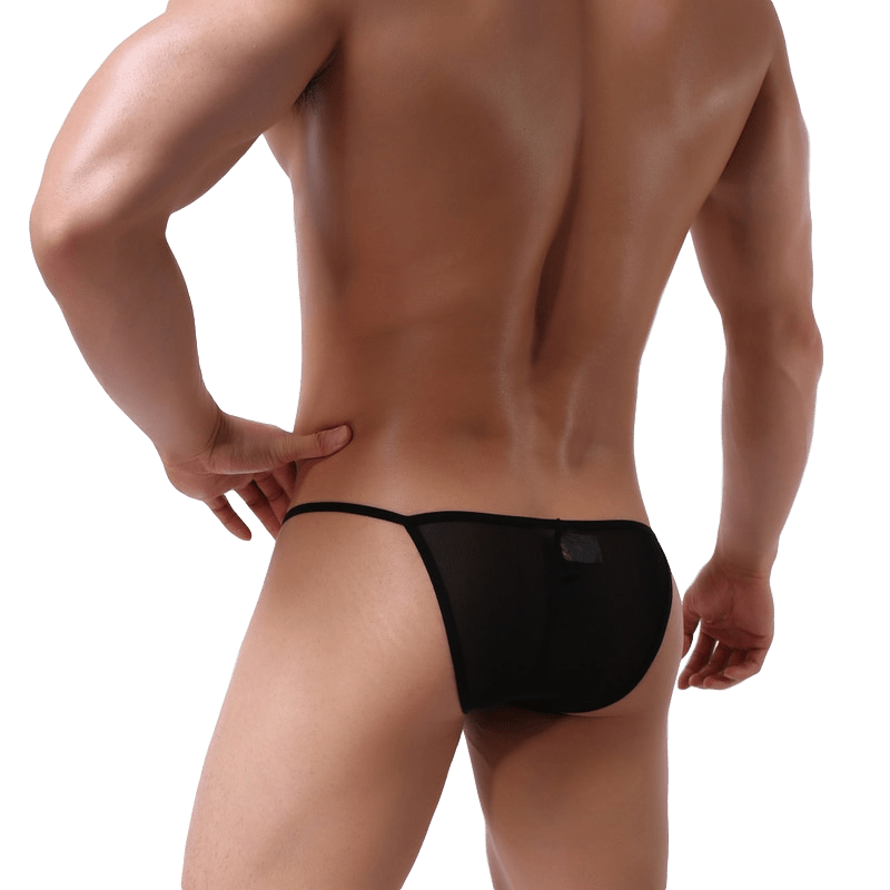 This semi-sheer string bikini with a convex bulge pouch won't hide much. Showoff your body as you rock this fun and exciting pair.